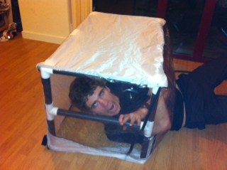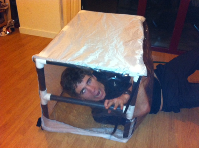 | Howell trying the tent out…. aha |