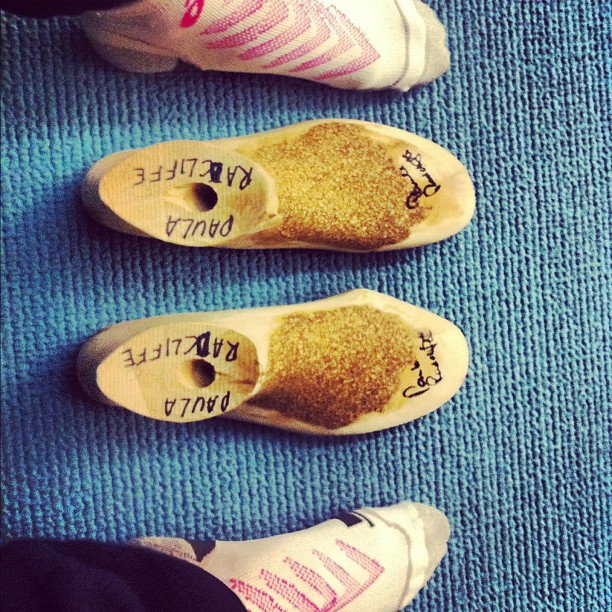 | My weird feet against Paula Radcliffe’s feet moulds! |