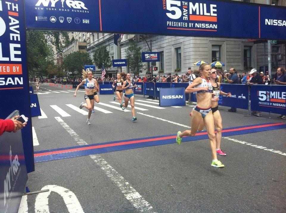 The hustle and bustle of Times Square really never stops – it’s crazy. But for a few hours on Saturday morning – part of 5thAvenue actually shuts down to allow the mile races! The whole event really was unbelievable and I hope that the NYRR will have me back again next year! After not feeling particularly well with the cold the previous week – I wasn’t too sure how my final race of the season would end – but I was pleased with my performance. The route is completely different to the one in Gateshead as the full mile is ran along the straight road of 5th Avenue – with only a small increase in gradient in the second 400m. There are also timers at every 400m so that the athletes know exactly what pace they are doing – and more importantly (for certain athletes) there is a cash incentive for whoever crosses the half-way line first (and for women – finish under a time of 4.32). The cash incentive is a further $1000(!!!) on top of the money prizes for the top 8. At half-way, the cash incentive didn’t even cross my mind – the only thing I could think about – was how close to the leaders I was and how slow the pace felt!