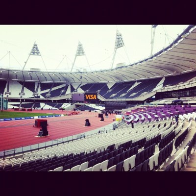 Yesterday I was extremely fortunate to get the opportunity to step inside the Olympic Stadium! I had seen pictures of from when it was still being built a few months ago but it is completely different, actually being there. The stadium is UNBELIEVABLE. As soon as I stepped inside, I wanted to start running around on the track but we weren’t allowed. Although we were allowed to jog very slowly beside Lord Seb Coe for the press photos across the finish line – which was pretty cool. I also got in trouble for taking pics but with it being BUCS Championships this weekend, I knew hundreds of folk would be taking pics then! So I just got in there first 😉
